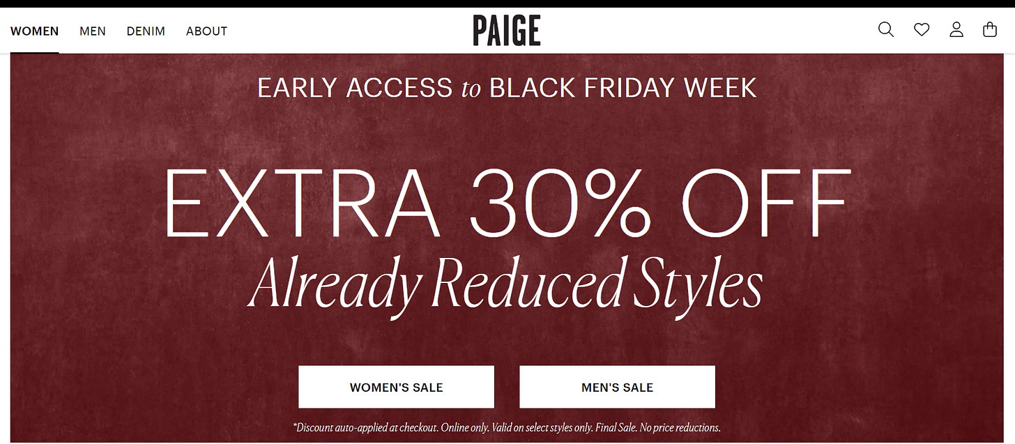Paige, which is known for their comfortable jeans, is running a Black Friday (final) sale. The inclusion of the word “final” implies that you can’t return the product after you bought it.