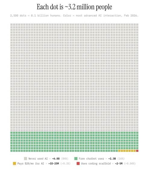 I understand this may feel overwhelming, but rest assured, you’re not behind. I’d like to share this chart from a LinkedIn post I stumbled across. Most people haven’t used AI before. And only a microscopic percentage are using AI at a high level. All you need to do is be curious and willing to explore!