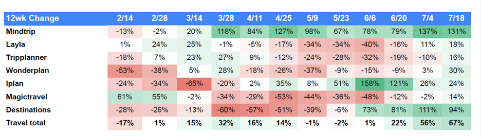 Check out the chart below that illustrates AI traffic growth for the AI travel and itinerary segment.
